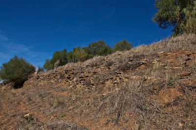 Numa recente visita ao local tivemos a oportunidade de observar, na encosta poente do esporão, uma expressiva concentração de fragmentos cerâmicos, designadamente exemplares estampilhados e um cossoiro.